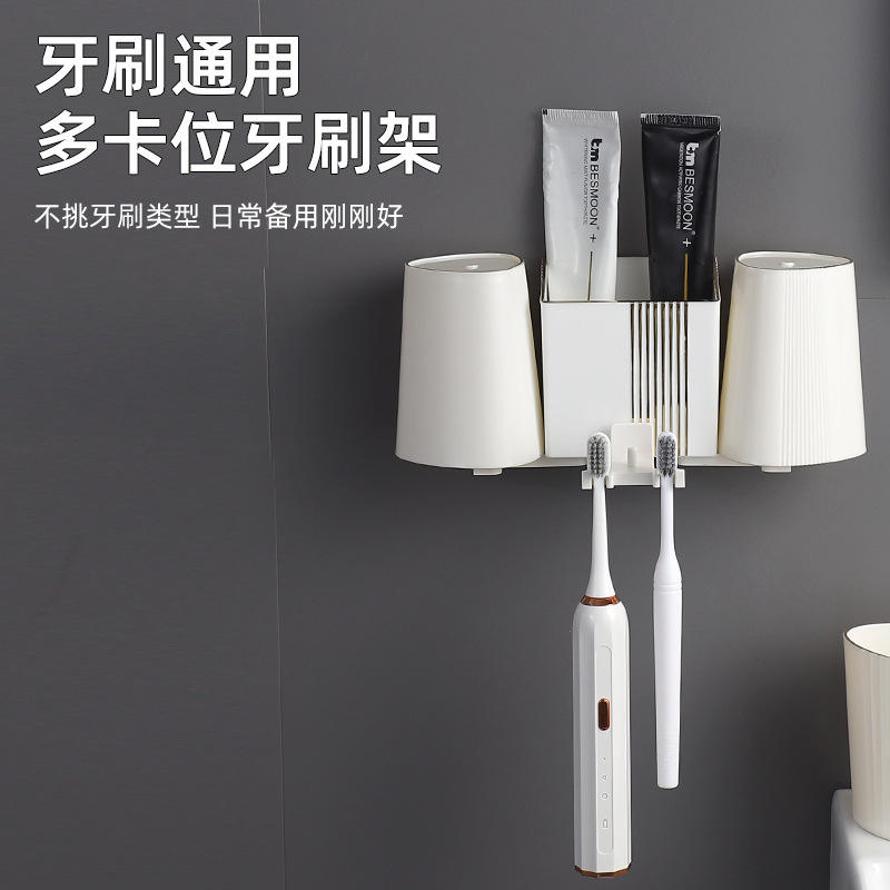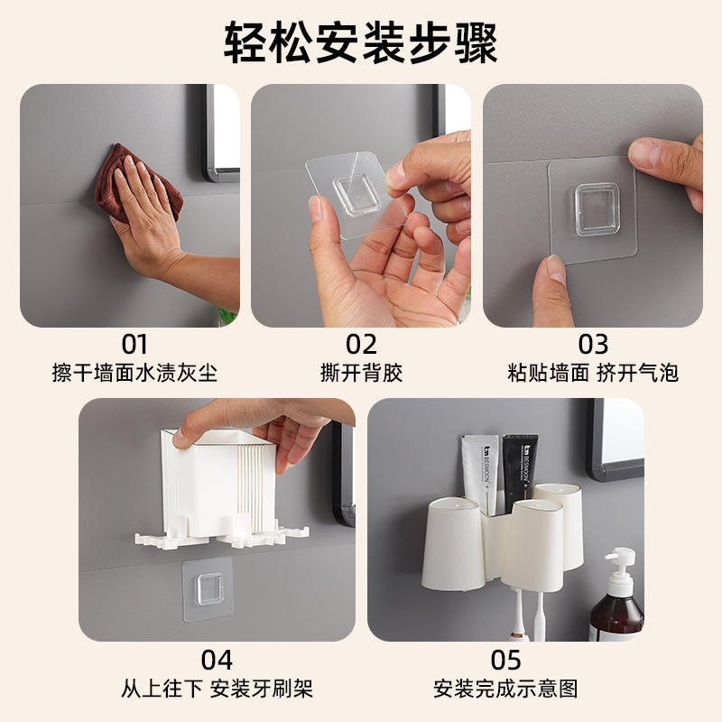ที่วางแปรงสีฟันแบบติดผนังสุดหรู พร้อมที่เก็บแก้วคู่ ไม่ต้องเจาะผนัง ประหยัดพื้นที่ ใช้จัดระเบียบห้องน้ำ