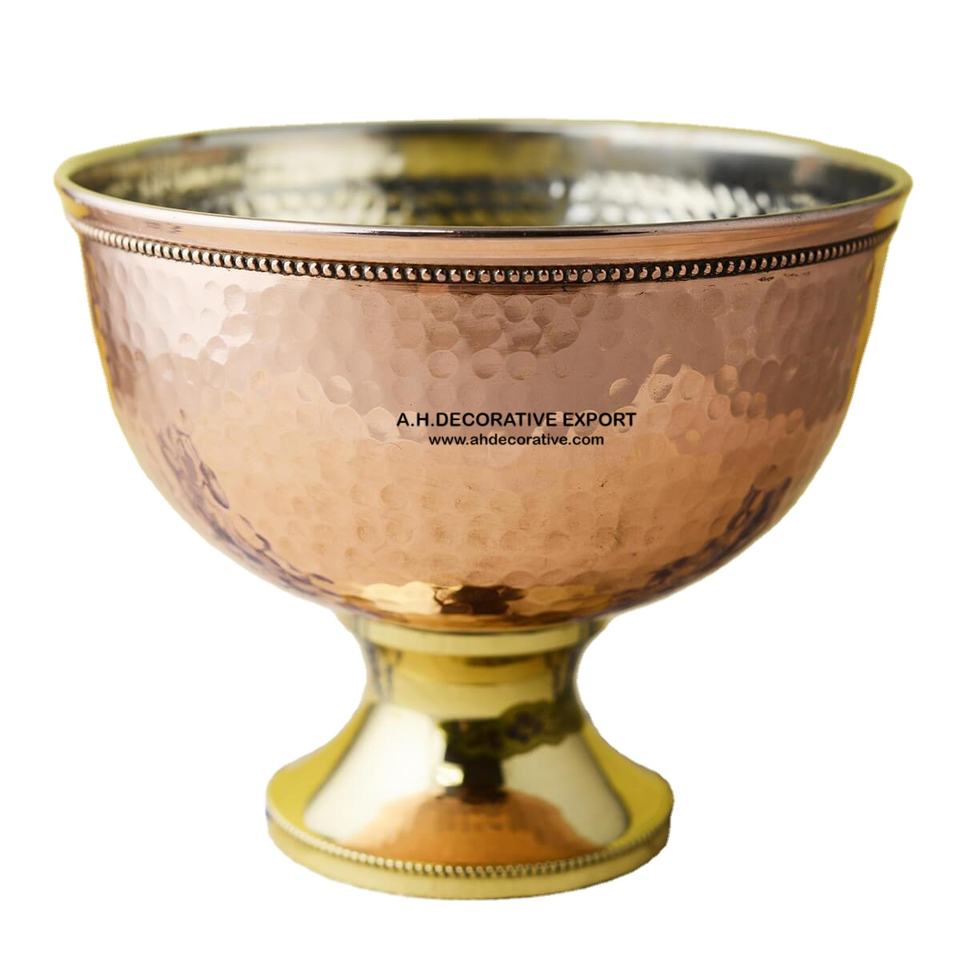 ชามทองแดงตกแต่งด้านบนสุดหรูพร้อมแท่นสีทองโต๊ะแต่งงานตกแต่งกลางชาม