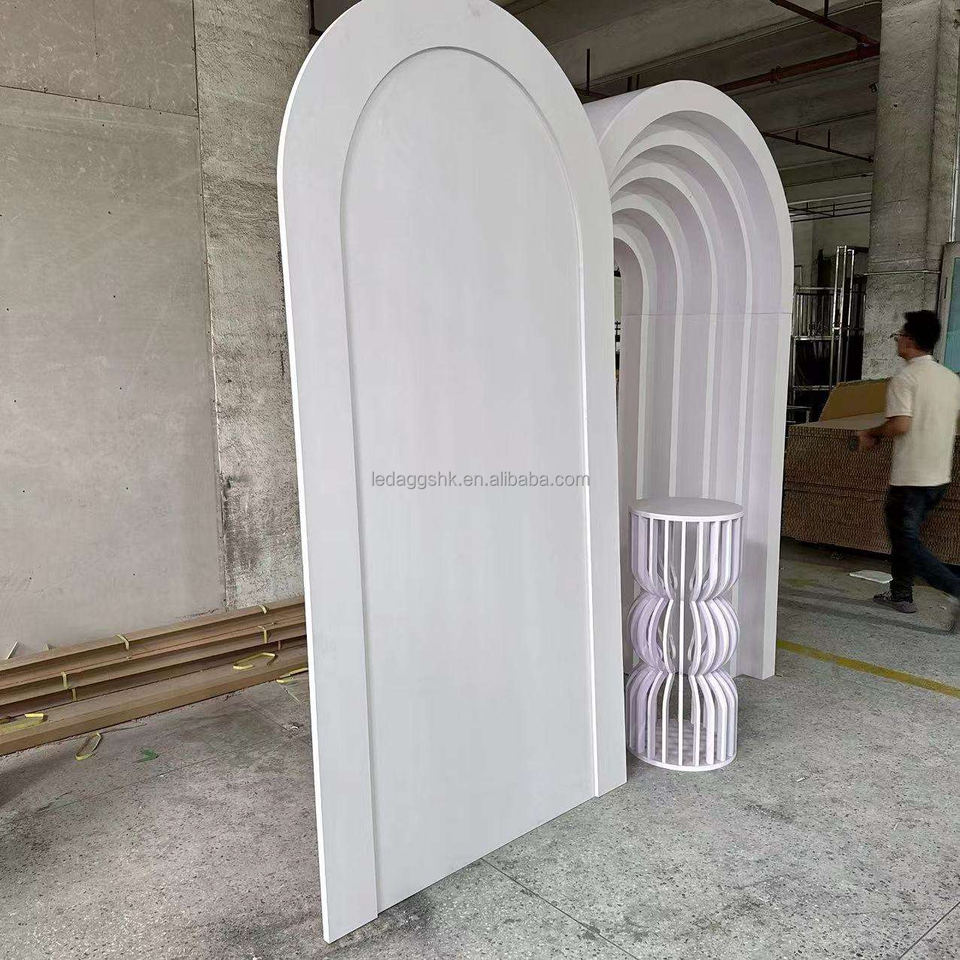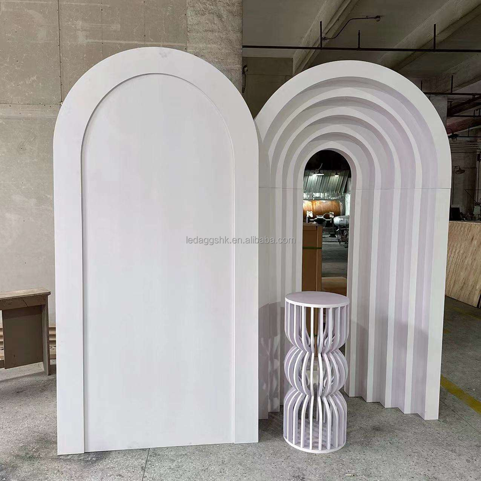 ฉากหลังงานแต่งงานทรงโค้ง PVC สีขาวลายคลื่น คุณภาพสูง หรูหรา สำหรับงานเลี้ยงฉลอง