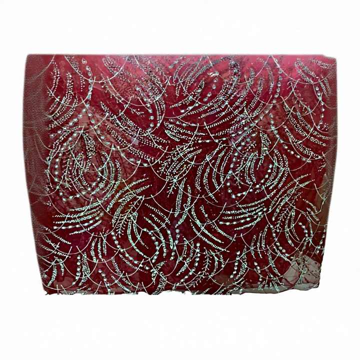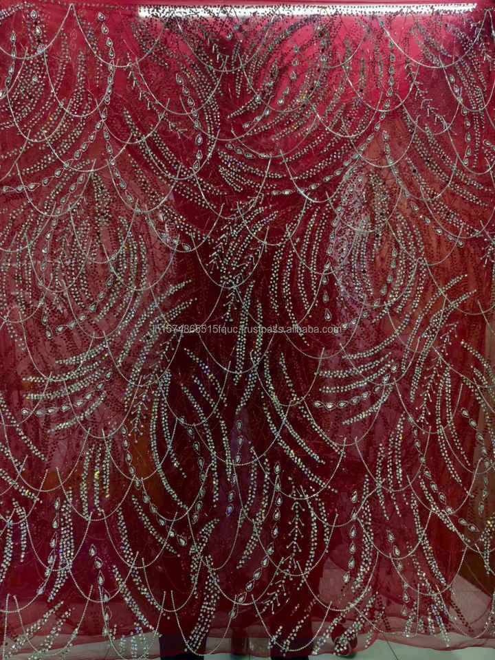 ผ้าลูกไม้ฝรั่งเศสแบบดั้งเดิมสุดหรู งานฝีมือประณีต ตกแต่งด้วยคริสตัลและลูกปัด วัสดุคุณภาพสูง ปรับแต่งได้