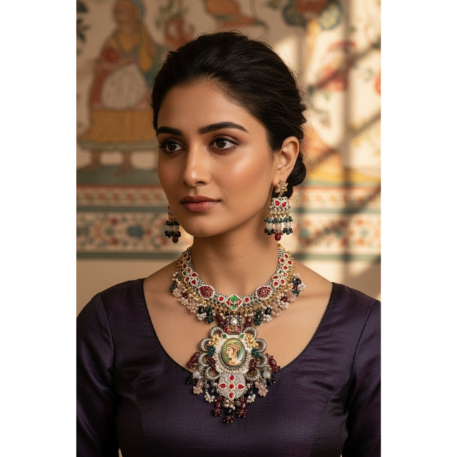 Luxury Traditional Kundan Necklace Set with Pendant & Jhumka Earrings – Bridal Wedding Jewelry