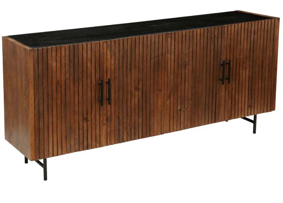 ตู้วางทีวีห้องนั่งเล่น/ห้องนอนสไตล์หรูหราแบบดั้งเดิม ทำจากไม้โอ๊ค ขาเหล็กสแตนเลส ท็อปหินอ่อน ตู้ข้าง 4 บาน