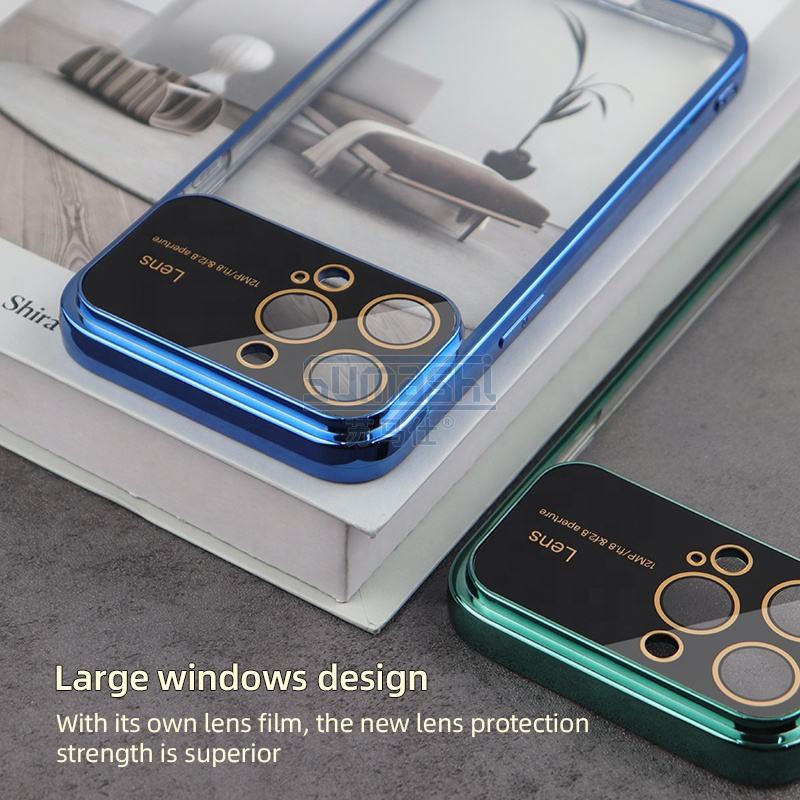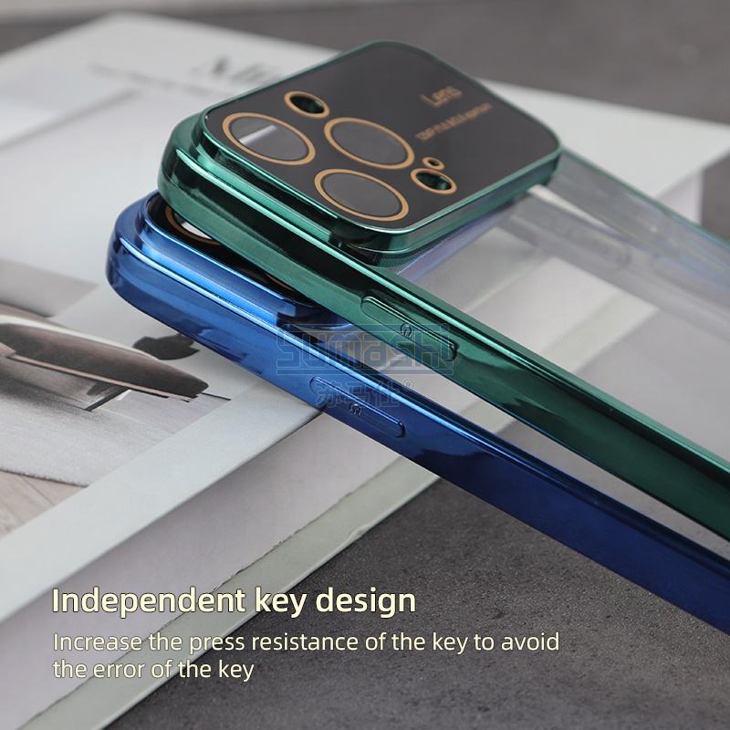 เคสโทรศัพท์โปร่งใสสุดหรูสำหรับ iPhone 14 Pro Max เคลือบด้วย TPU ด้วยไฟฟ้าพร้อมฝาครอบโทรศัพท์ป้องกันกล้องขนาดใหญ่สำหรับ iPhone 13 Pro