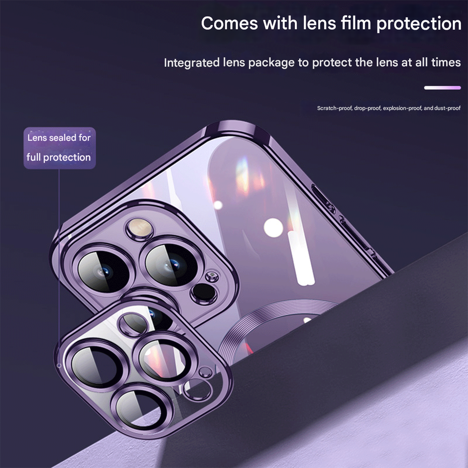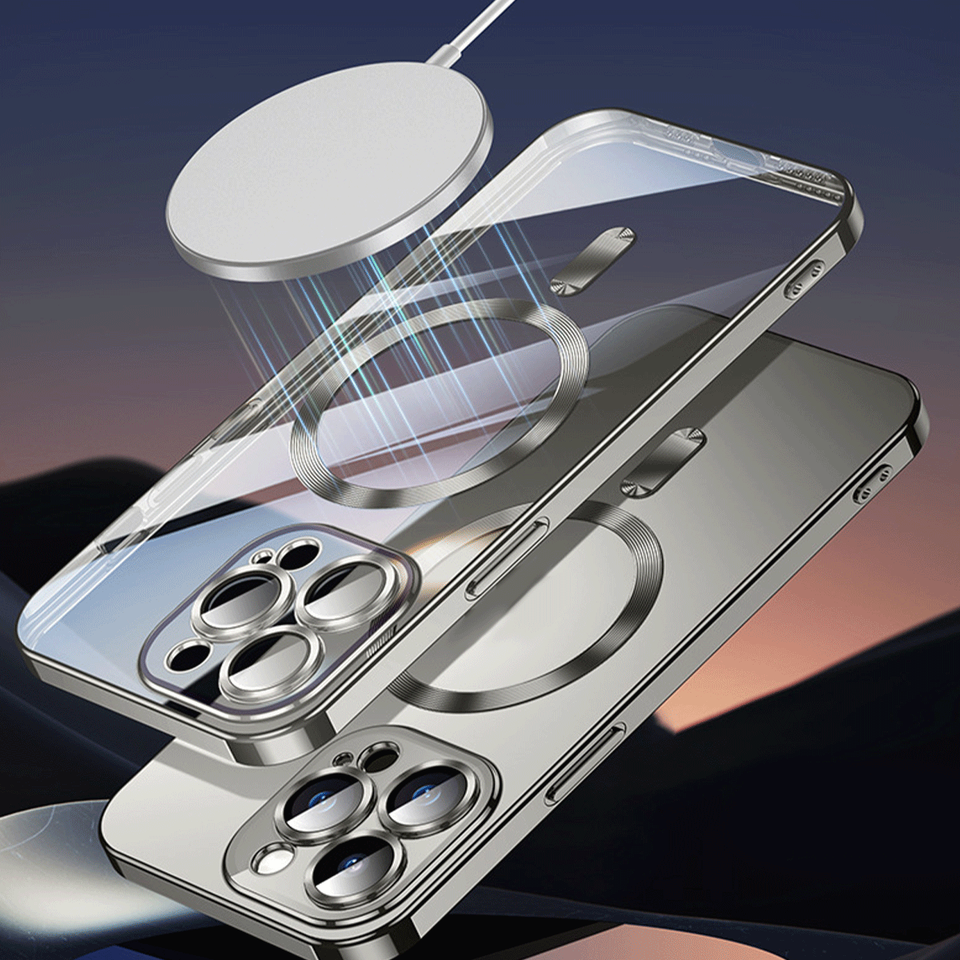 เคสใส TPU หรูหรา ป้องกันแม่เหล็ก รองรับการชาร์จไร้สาย ชุบเคลือบ ใช้ได้กับ iPhone ทุกรุ่น