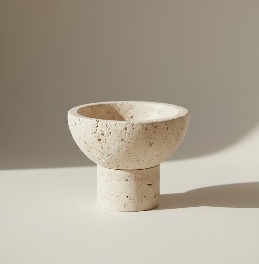 ชามหินอ่อน Travertine หรูหราสำหรับตกแต่งห้องน้ำ สไตล์สปา ใช้เก็บของบนโต๊ะเครื่องแป้ง และตกแต่งบ้านสไตล์โมเดิร์น ชามอเนกประสงค์สุดหรู