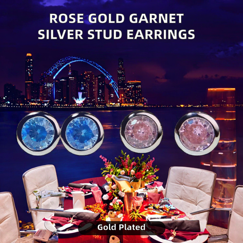 ต่างหูเงินแท้ 925 ชุบทองคำขาว 18K ประดับพลอยโกเมนสีแดง 5 มม. ดีไซน์หรูหราทันสมัย เหมาะสำหรับผู้หญิง งานแต่งงาน งานฉลองครบรอบ ของขวัญ รุ่น EI016