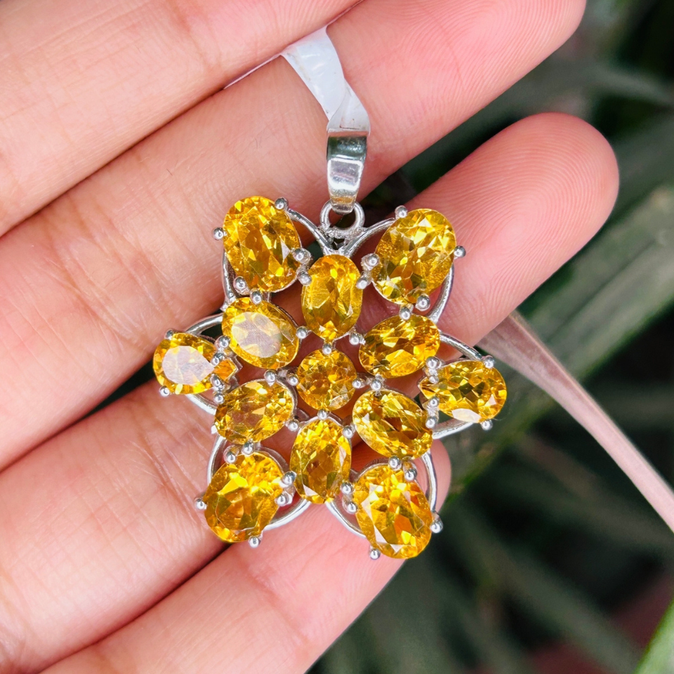 จี้รูปดาวซิทรินชุบโรเดียมเงินแท้ 925 สุดหรูทันสมัย ประดับพลอยประจำเดือนพฤศจิกายน เครื่องประดับงานแต่งงานสุดชิค ราคาโรงงานถูก
