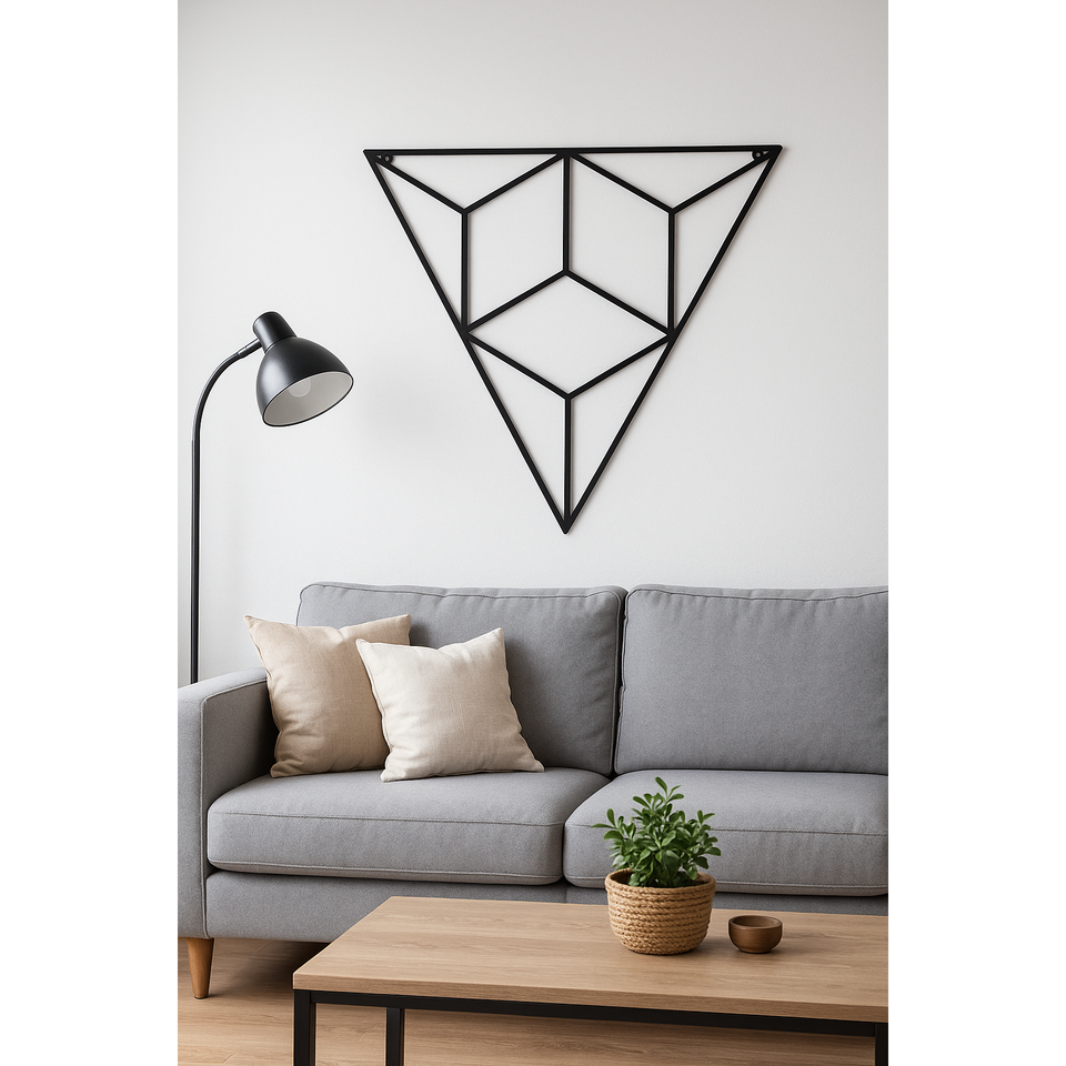 งานศิลปะติดผนังรูปทรงสามเหลี่ยมหรูหรา ดีไซน์กรอบโลหะแบบนามธรรม สีดำ ขนาด 24 นิ้ว สำหรับตกแต่งห้องนั่งเล่น บ้าน หรือพิธีบัพติศมา