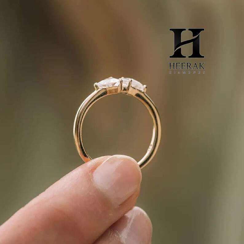 แหวนหมั้นเพชรที่โตในห้องปฏิบัติการสุดหรู14K สีเหลืองทอง Toi et Moi แหวนเพชรสองชิ้นเครื่องประดับสามเหลี่ยมตัด