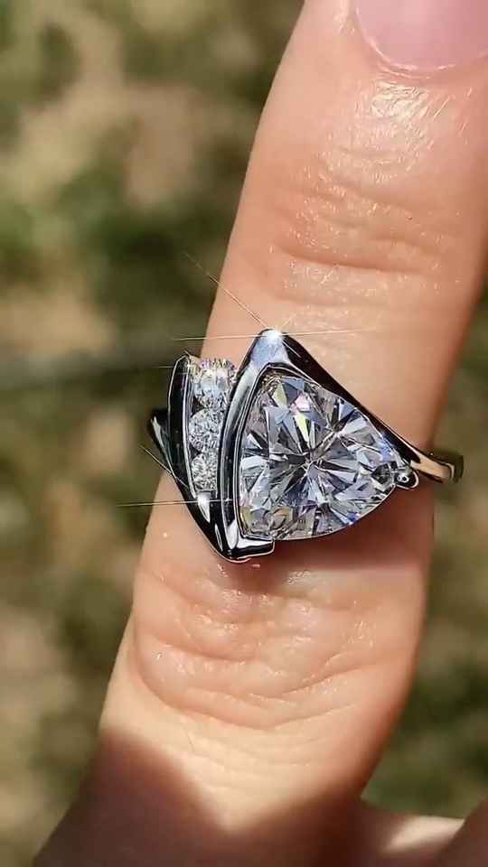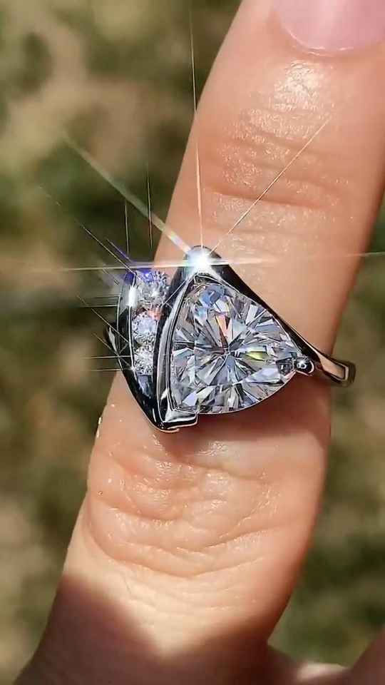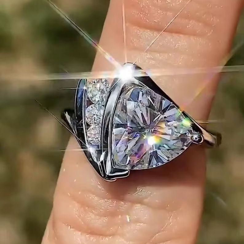 แหวนค็อกเทลเพชรโมอิสซาไนต์ทรงทริลเลียนสุดหรูสำหรับผู้หญิง เงินแท้ 925 ของแท้ ของขวัญงานแต่งงานสำหรับคนรัก