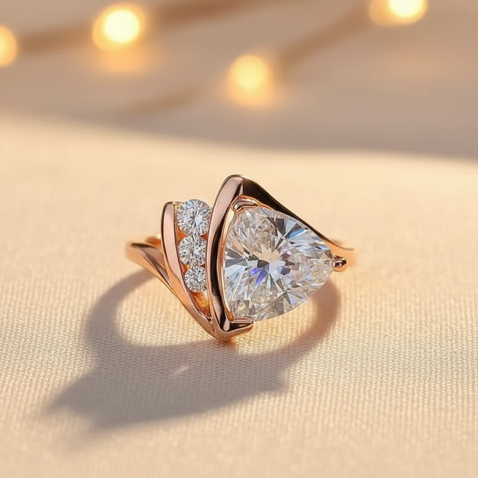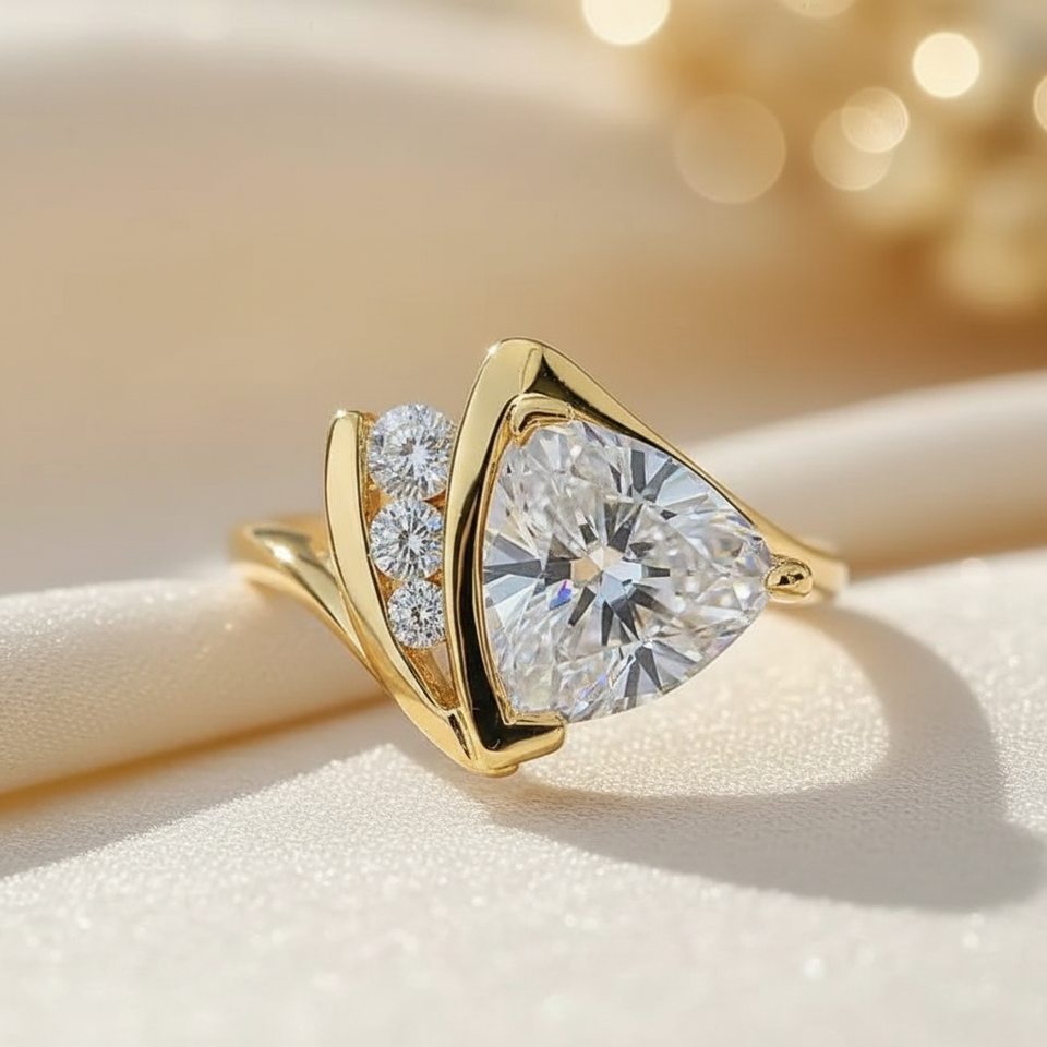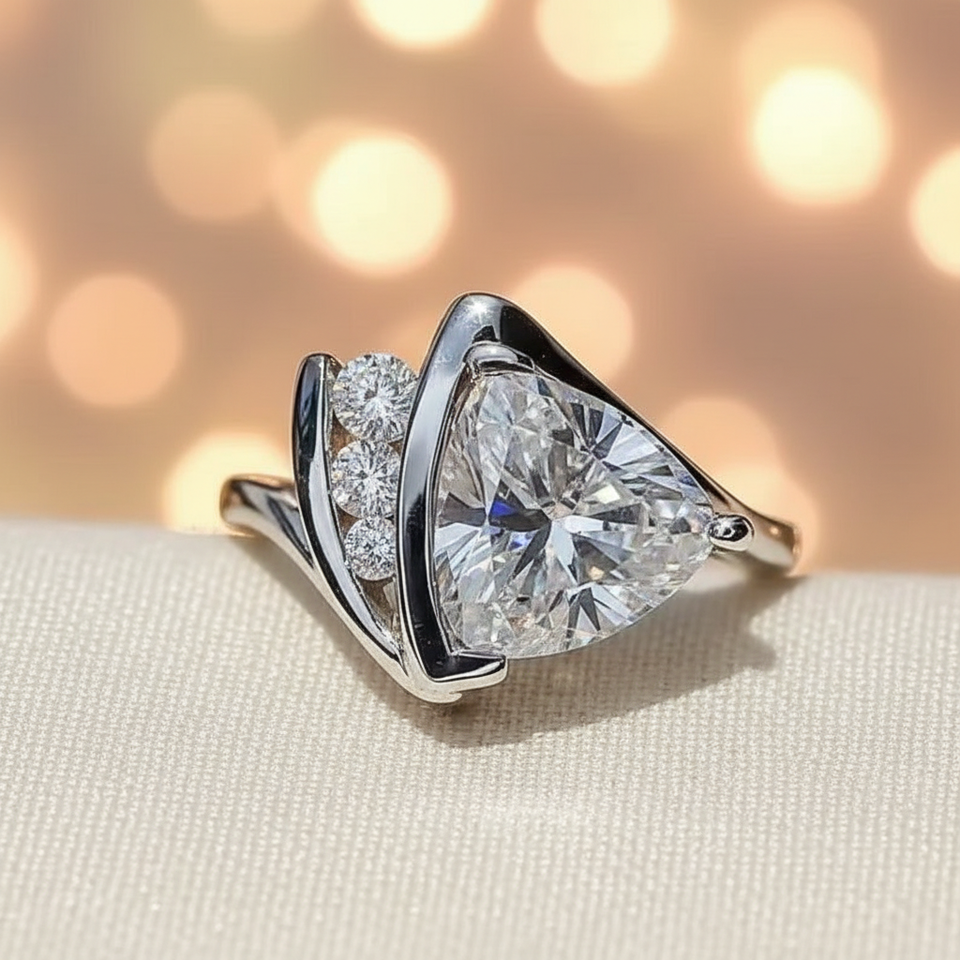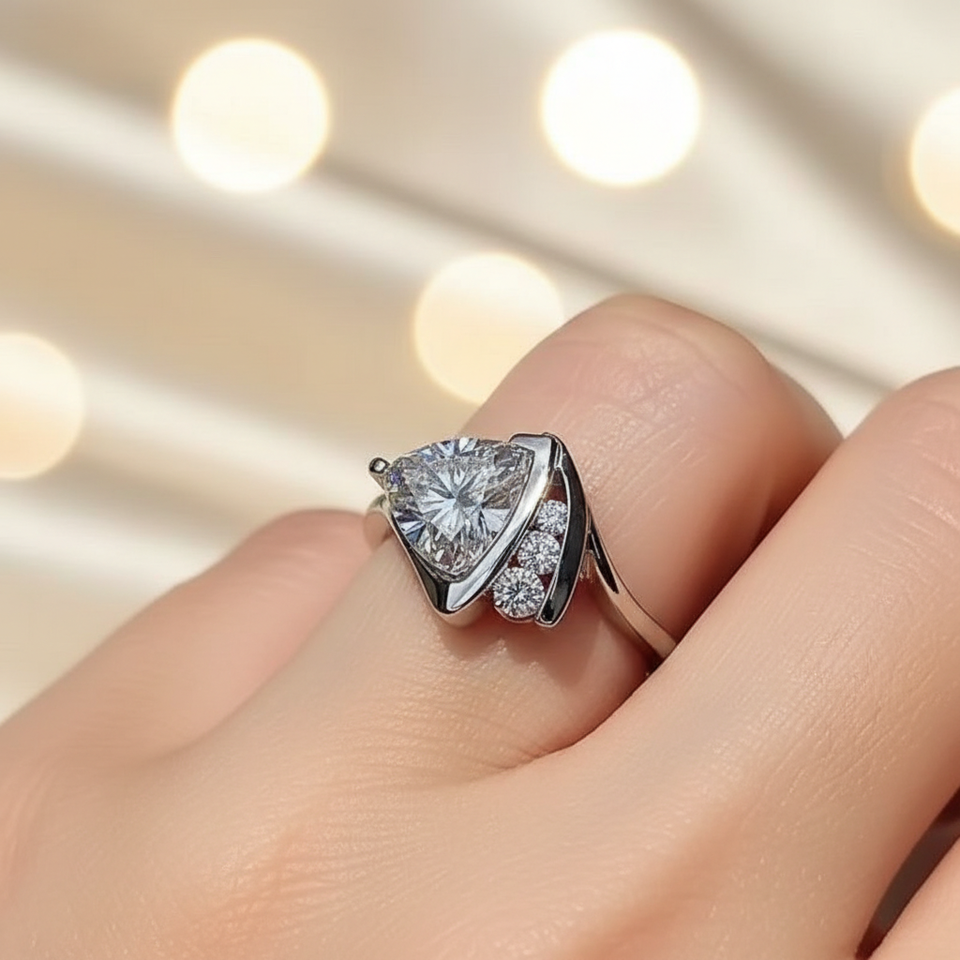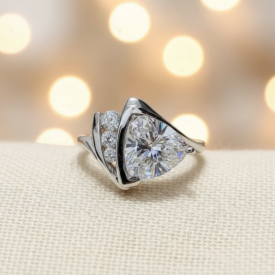 แหวนค็อกเทลเพชรซิคอนทรงทริลเลียนคัทหรูหรา ขอบครึ่งวง ตัวเรือนเงินแท้ 925 ของขวัญสำหรับคนรักในโอกาสหมั้น แต่งงาน หรือวันครบรอบ