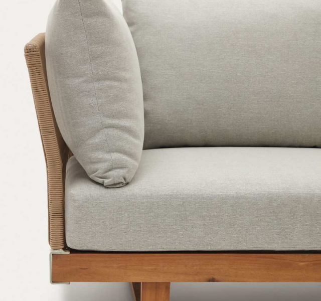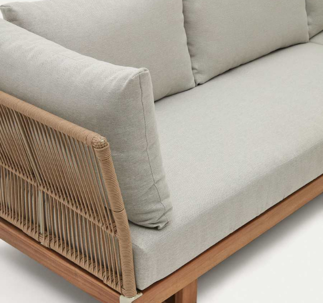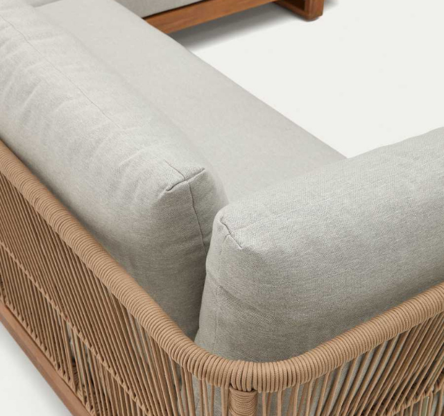 ชุดโซฟาสวนกลางแจ้งสไตล์ทรอปิคอลสุดหรู พร้อมดีเทลเชือกถัก โครงไม้สักแท้ สำหรับโรงแรม วิลล่า รีสอร์ท ลานบ้าน ระเบียง ระดับพรีเมียม