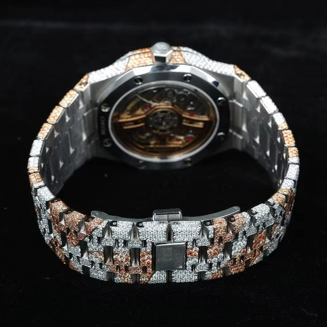 นาฬิกาเพชรโมอิสสีเย็นแบบทูโทนสุดหรูสีโรสโกลด์ลายพรางตามสั่งสายสแตนเลสคุณภาพสูง