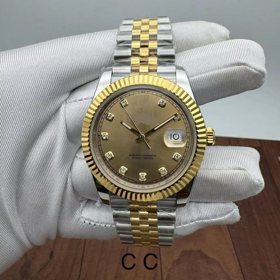 นาฬิกาอัตโนมัติสุดหรูแบบทูโทนสีทอง รุ่นจูบิลี่ หน้าปัดประดับเพชร ขอบหน้าปัดแบบฟลูเต็ด แสดงวันที่ คุณภาพสูง ETA รุ่นลิมิเต็ดอิดิชั่น สไตล์เอลีท