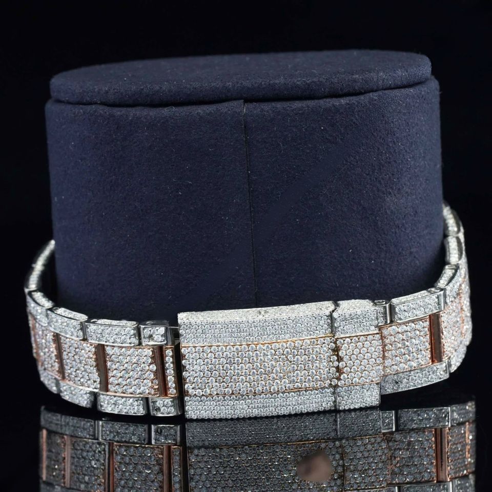 นาฬิกาสองสี VVS Moissanite & Diamond สุดหรูสำหรับผู้ชายนาฬิกาสไตล์ฮิปฮอปหน้าปัดกระจกเครื่องประดับของขวัญสำหรับน้องชายหรือแร็ป