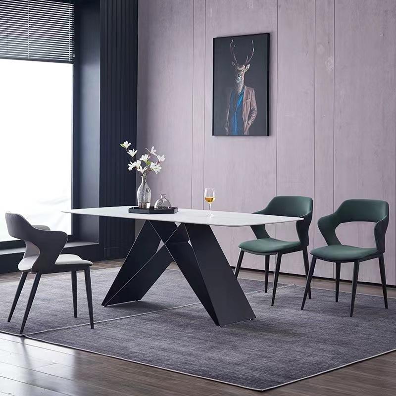 โต๊ะรับประทานอาหารและเก้าอี้ทำจากสแตนเลสโต๊ะและเก้าอี้หินอ่อนทรงสี่เหลี่ยมหรูหราทันสมัยหรูหรา