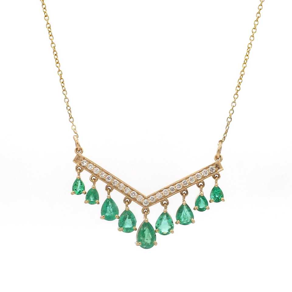จี้เพชรทรงหยดน้ำมรกตหรูหรา รูปตัววี ดีไซน์ทันสมัย ประดับเพชรเต็มตัว งานทอง 14k สำหรับผู้หญิง ระดับไฮเอนด์ ขายส่งแบบ OEM