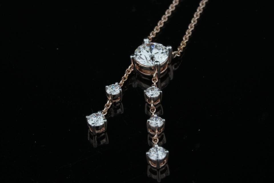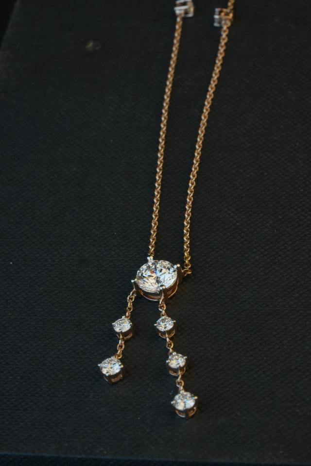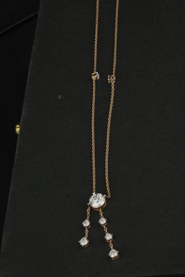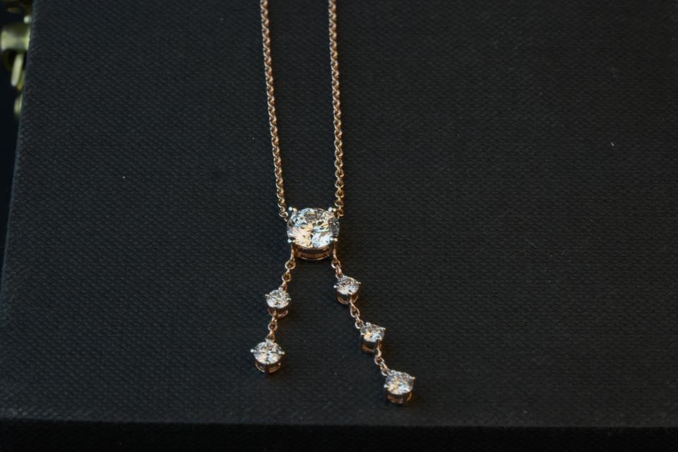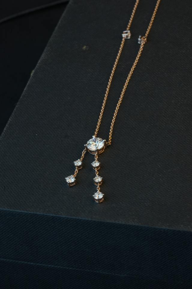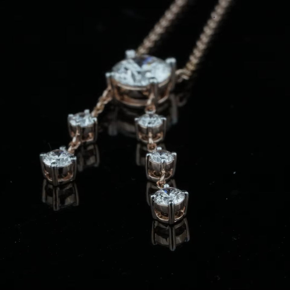 สร้อยคอรูปลูกแพร์โต18/14Kt สีขาว VS1ใสมีความคมชัดระดับแล็บเหมาะสำหรับงานแต่งงานและงานเลี้ยง