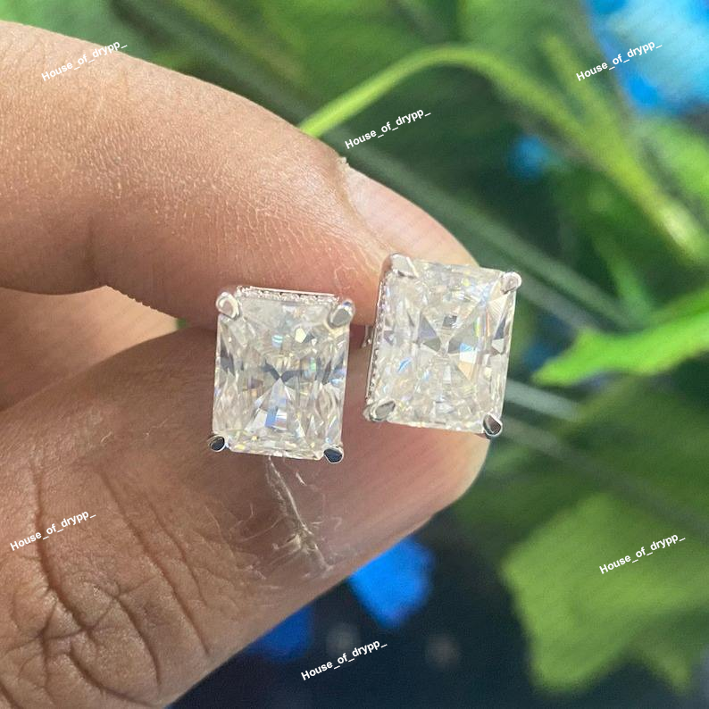 ต่างหูเพชรโมอิสซาไนต์ทรงเหลี่ยมขนาดใหญ่ ประดับเพชรขาว ตัวเรือนเงินแท้ ดีไซน์หรูหรา ประดับเพชรแบบ Iced Out สำหรับผู้หญิง