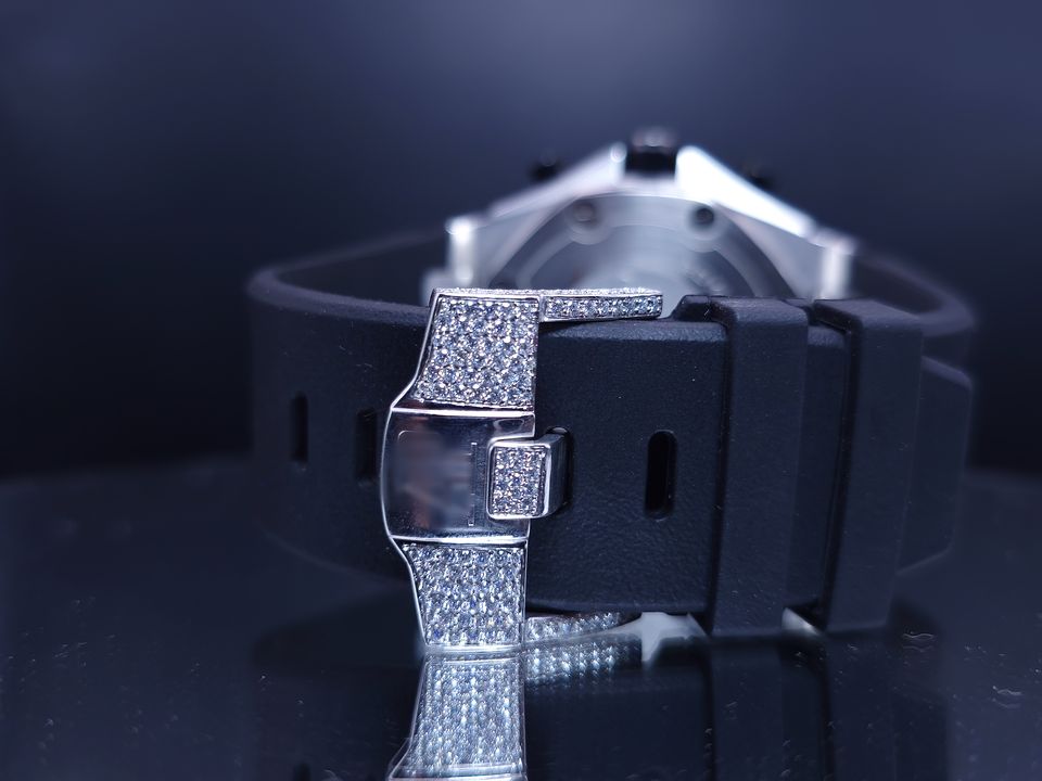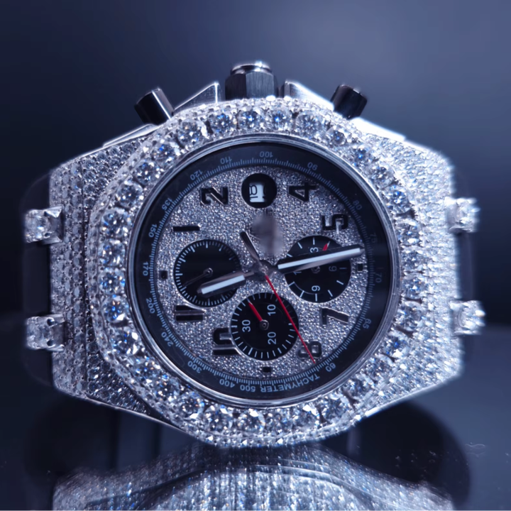 นาฬิกาข้อมือหรูหราประดับเพชรโมอิสซาไนต์ VVS สายยาง ระบบควอตซ์ สไตล์ฮิปฮอป สำหรับทุกเพศ