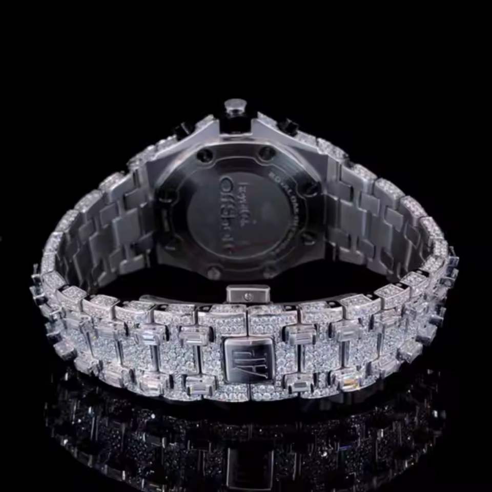 นาฬิกาสุดหรู VVS Moissanite ประดับเพชรนาฬิกาควอตซ์ระบบกลไกอัตโนมัติแนวฮิปฮอปผู้ผลิตรายใหญ่ขายส่งราคาอินเดีย