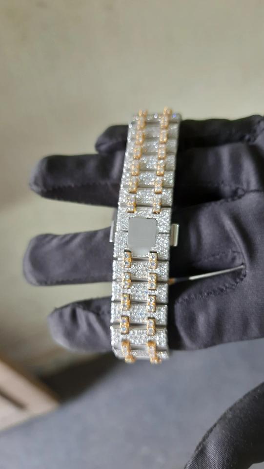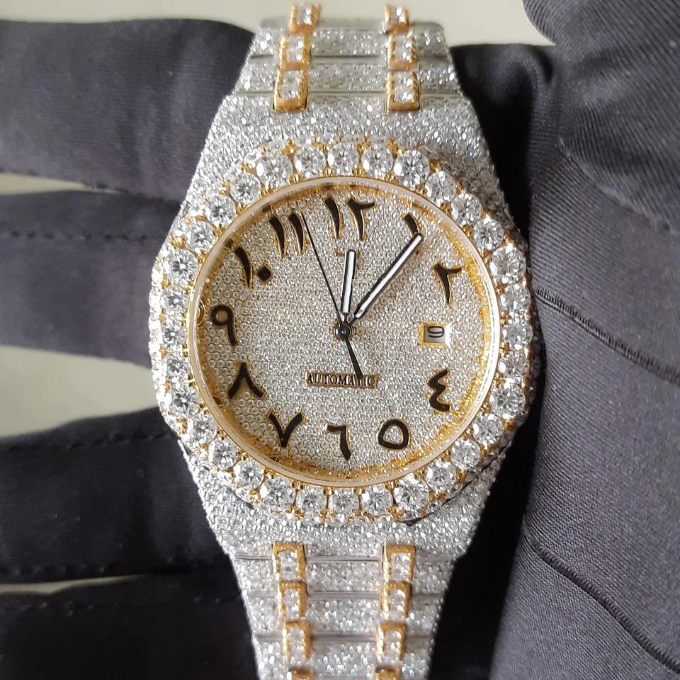 นาฬิกาอัตโนมัติสองสีประดับเพชรโมอิสซาไนต์ VVS ระดับหรูหรา หน้าปัดแบบอารบิก สไตล์ฮิปฮอปแนวสตรีท