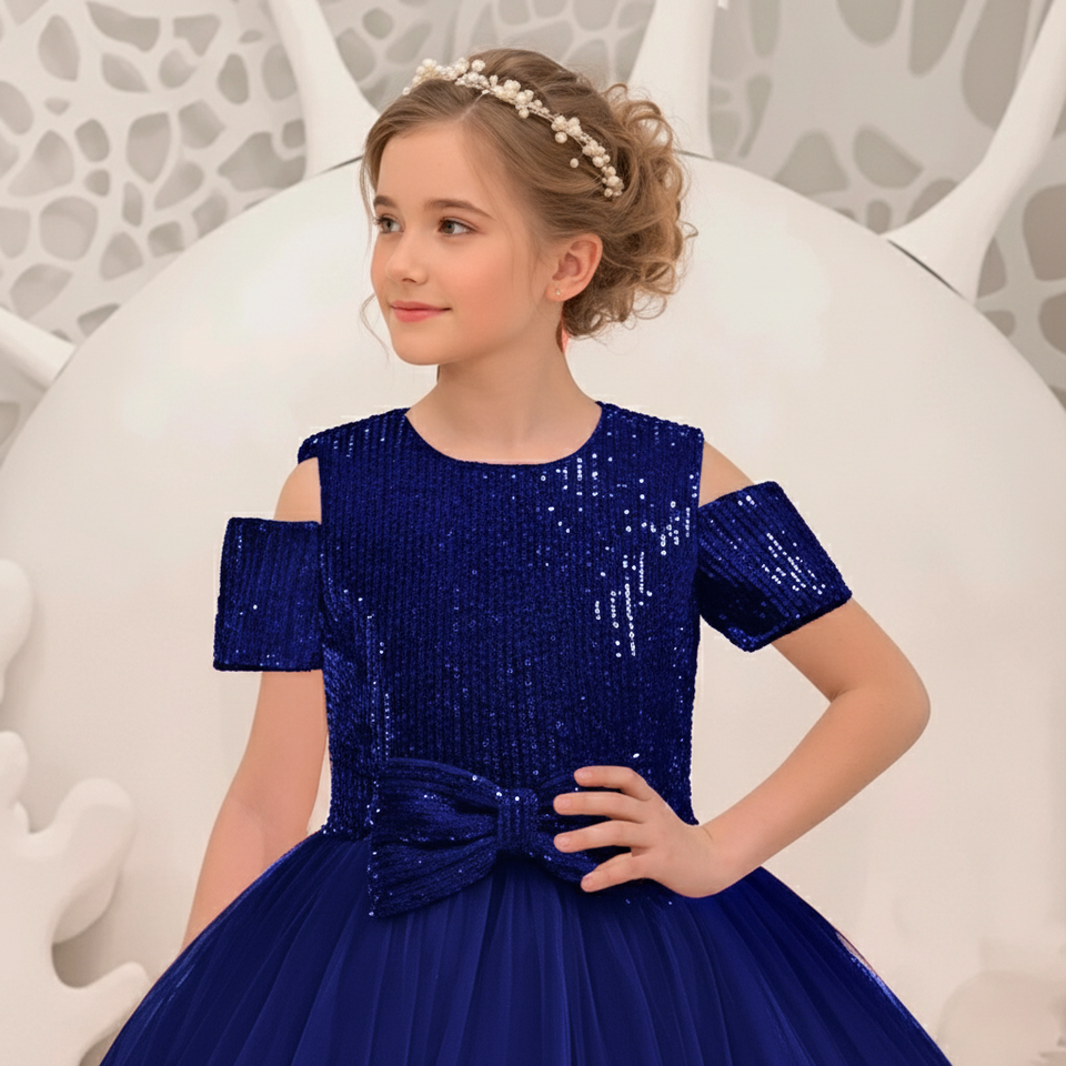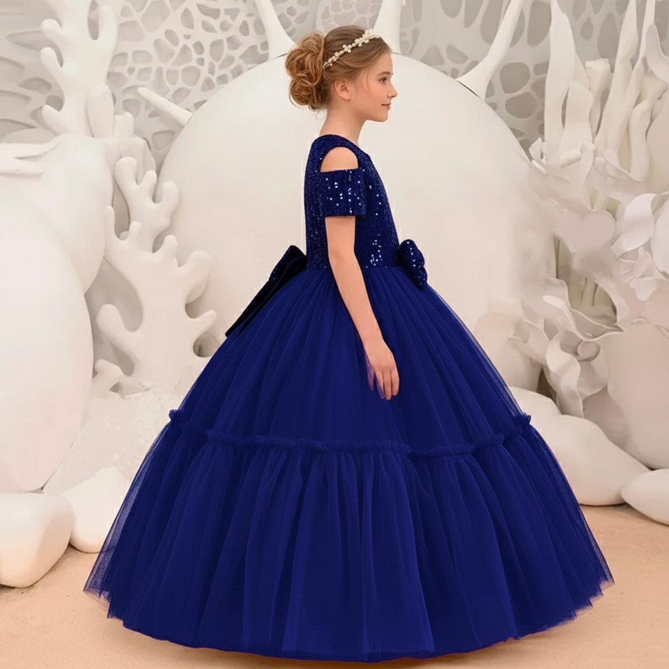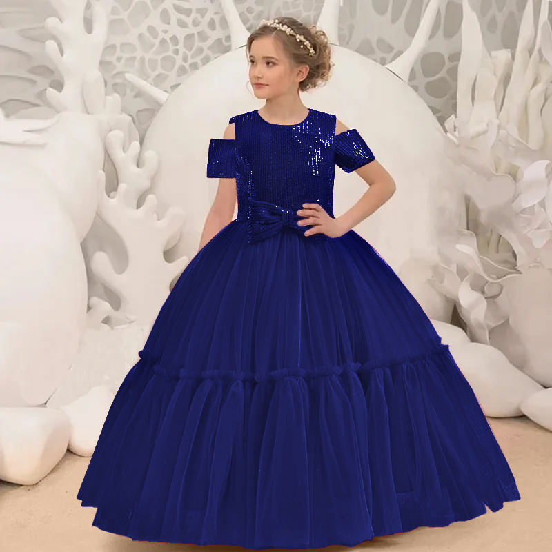 ชุดเดรสยาวสำหรับเด็กผ้ากำมะหยี่หรูหราประดับเลื่อมสีน้ำเงินรอยัลชุดสาวดอกไม้สำหรับงานแต่งงานสำหรับแขกงานแต่งงานชุดราตรีวันเกิดเด็ก