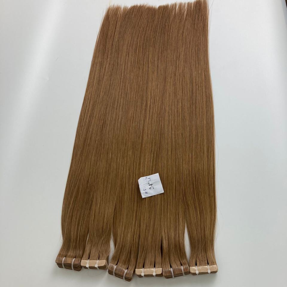 ผมต่อแบบเทปอิน เวอร์จิ้น เรมี่ เกรดพรีเมียม แท้ 100% จากเวียดนาม ความยาว 24 นิ้ว แบบตรง สีบลอนด์ ลอนลึกแบบหลวมๆ