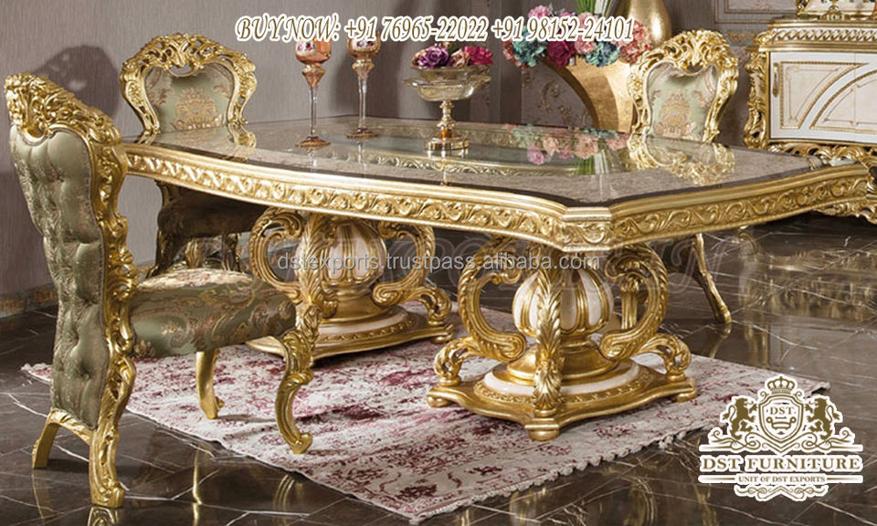 ชุดเฟอร์นิเจอร์ห้องรับประทานอาหารสไตล์วิลล่าหรูหราสำหรับตกแต่งบ้านพักตากอากาศ ชุดโต๊ะอาหารแกะสลักสไตล์บาโรกโบราณสุดหรู เฟอร์นิเจอร์ห้องรับประทานอาหารคุณภาพสูง