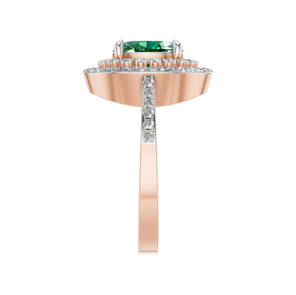สไตล์:แหวนพลอยมรกตทรงวงรีสไตล์วินเทจพร้อมเพชร Halo
