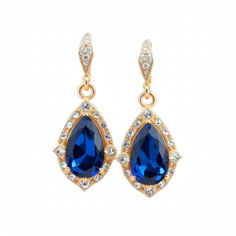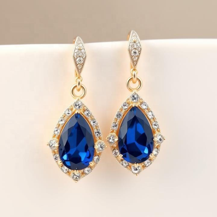 ต่างหูแบบห้อยประดับอัญมณีสีฟ้าทำมือสไตล์วินเทจหรูหราสำหรับผู้หญิงเครื่องประดับแฟชั่น
