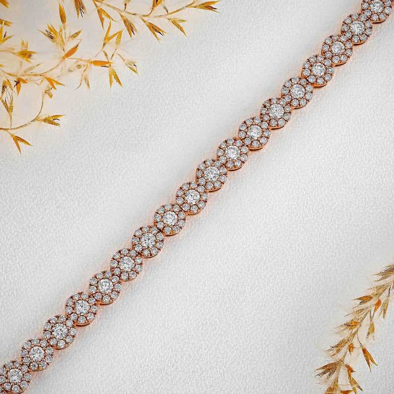 สร้อยข้อมือเทนนิสสไตล์วินเทจสุดหรูสร้อยข้อมือทอง18K สำหรับสตรีประดับด้วยเพชรแท้ทำด้วยมือเครื่องประดับชิ้นใหญ่สำหรับเธอ