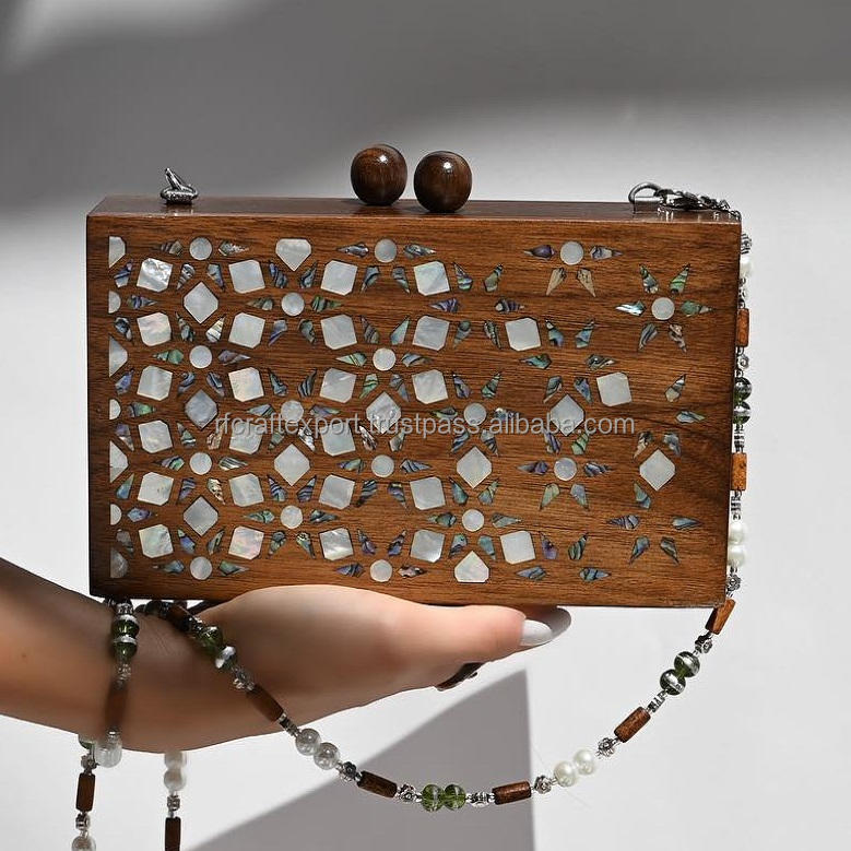 กระเป๋าคลัทช์ไม้สไตล์วินเทจสุดหรูสำหรับผู้หญิงสำหรับงานราตรีหรูหราสไตล์วินเทจ