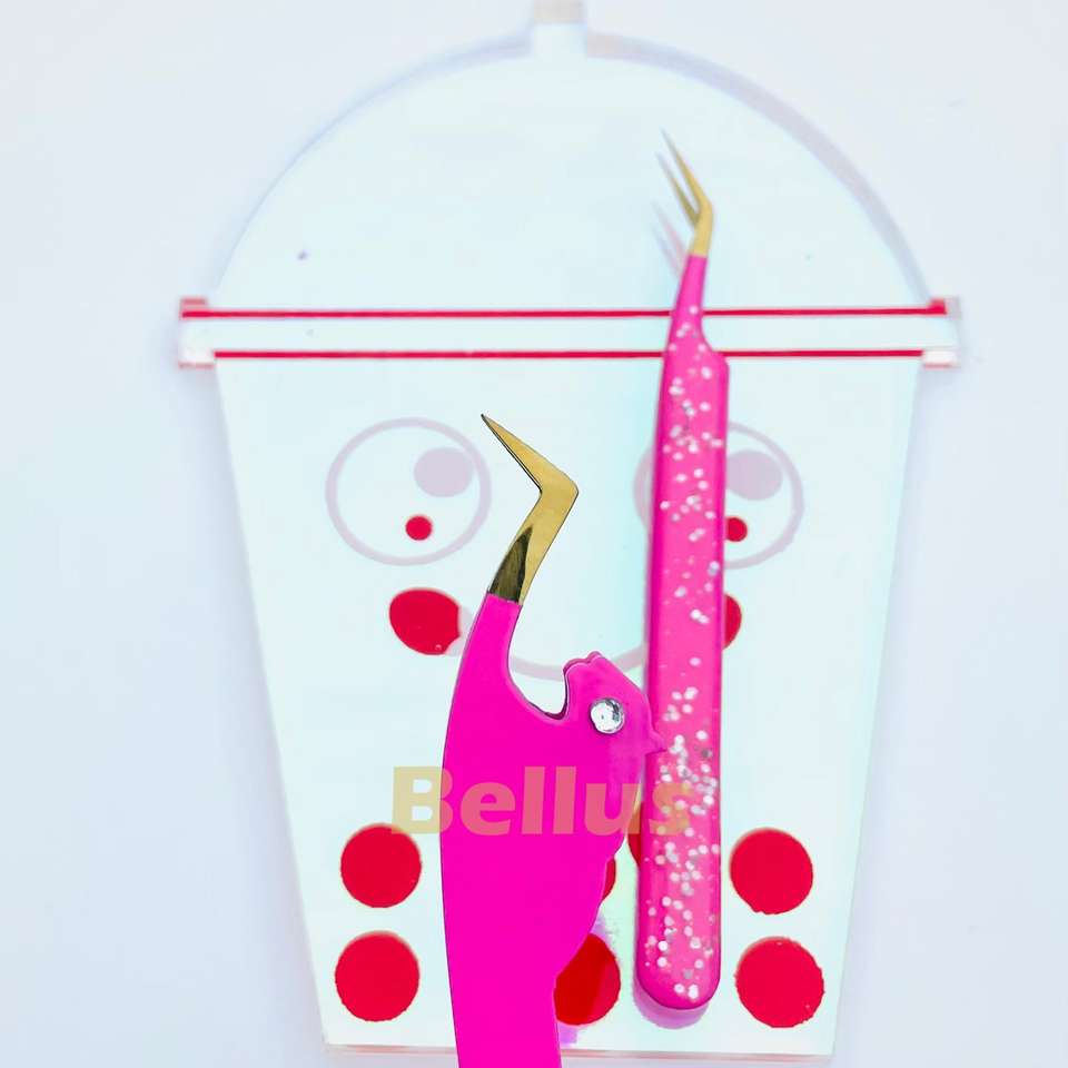 Luxury Volume Lash Tweezers with Custom Package Pink Gold Steel Eyelash Extension Tweezers Beauty Applicator Tool