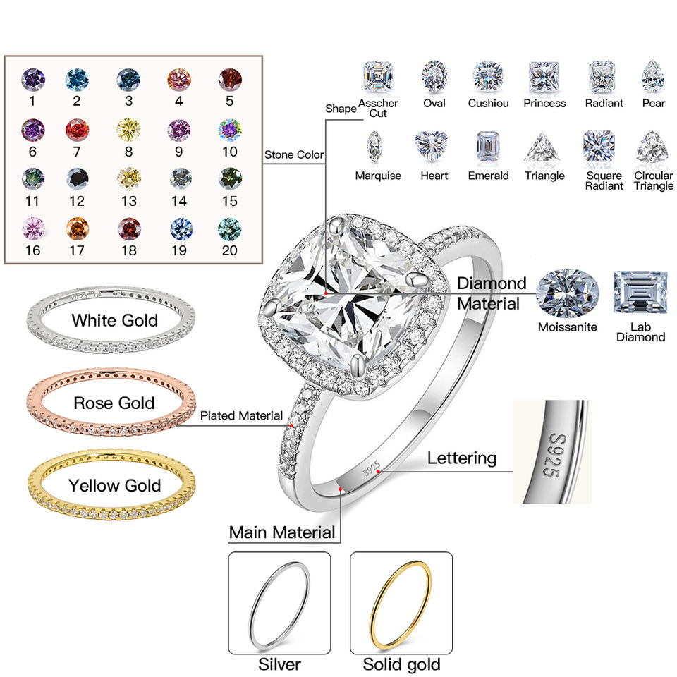 สี:ทองคำขาว/ทองคำเหลือง/ทองคำชมพู