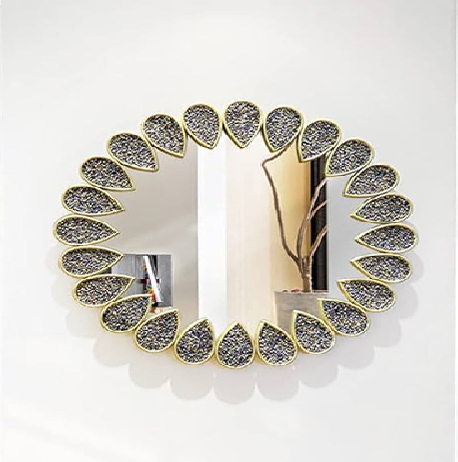 กระจกติดผนังหรูหราสำหรับห้องนั่งเล่น กระจกติดผนังทรงกลมโลหะคุณภาพสูงสำหรับตกแต่งคริสต์มาส กระจกศิลปะติดผนังทันสมัย