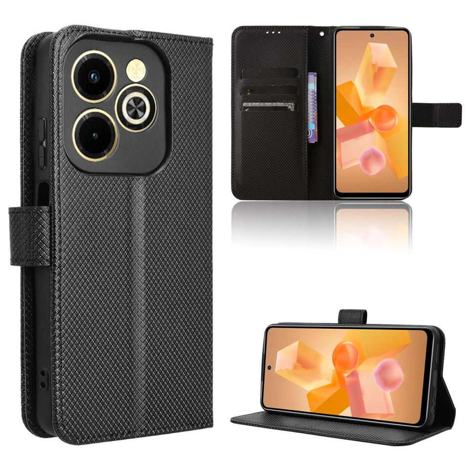 กระเป๋าสตางค์หรูหราลายเพชรหนัง PU เคสโทรศัพท์พลิกสําหรับ Infinix Hot 40i 4G