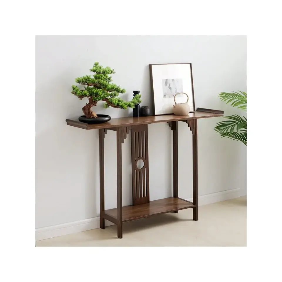 Luxury Walnut Double Layer Entrance Table Bamboo 102*29*83cm No Drawer for Storage in Villa Living Room Hotel Bedroom Farmhouse