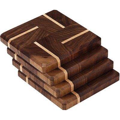 ชุดจานรองแก้วไม้วอลนัทสุดหรู พร้อมลายทองเหลือง - แผ่นรองแก้วทำมือสไตล์โมเดิร์นสำหรับโต๊ะกาแฟ แผ่นรองเครื่องดื่ม จานรองแก้วแบบกำหนดเองได้ ทนทาน