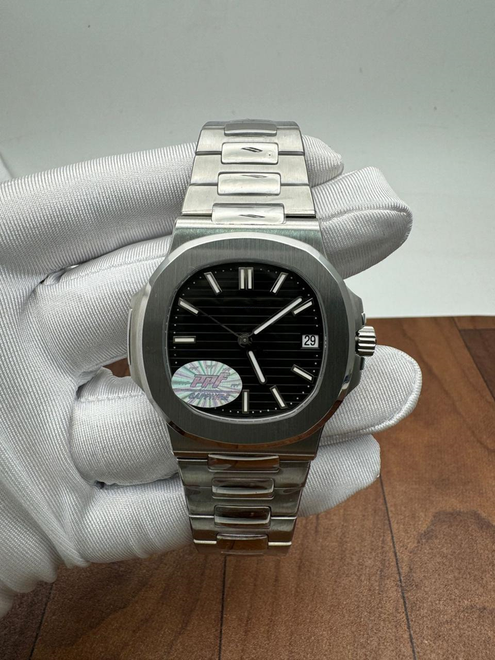 นาฬิกาหรูคุณภาพสูง ขนาด 41 มม. หน้าปัดสีดำลายนูน แสดงวันที่ กระจกแซฟไฟร์ ตัวเรือนสแตนเลสสตีล กลไก ETA