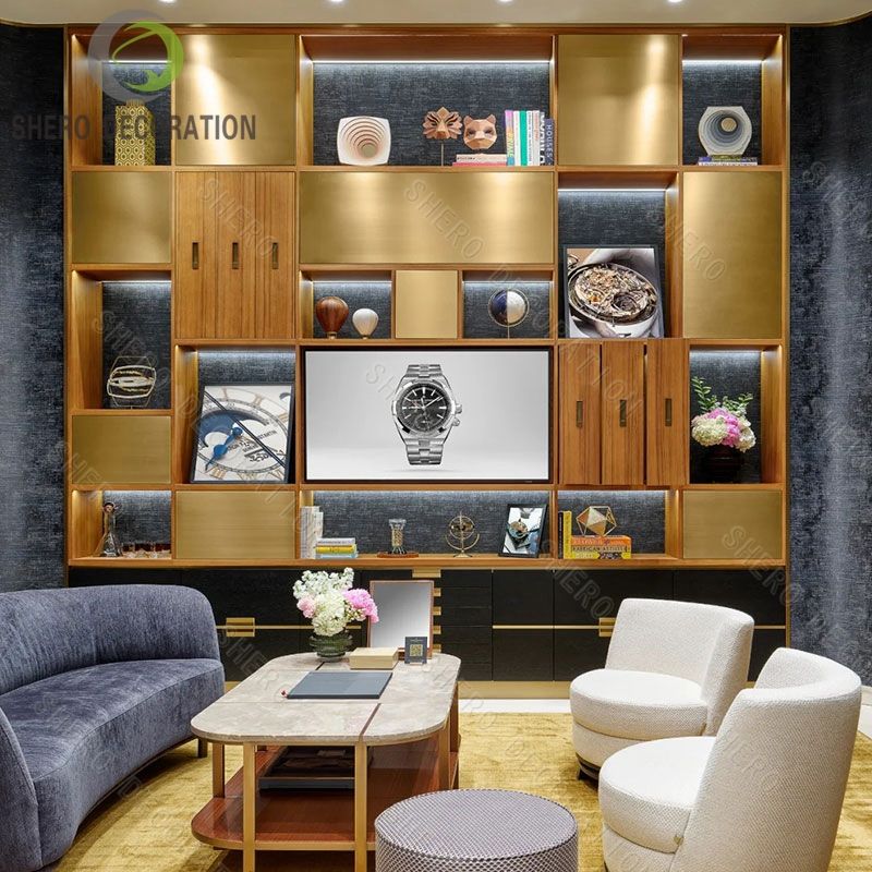 การออกแบบตกแต่งภายในโชว์รูมนาฬิกาหรู ตู้โชว์นาฬิกาแบบติดผนังสำหรับตกแต่งร้านนาฬิกาในห้างสรรพสินค้า