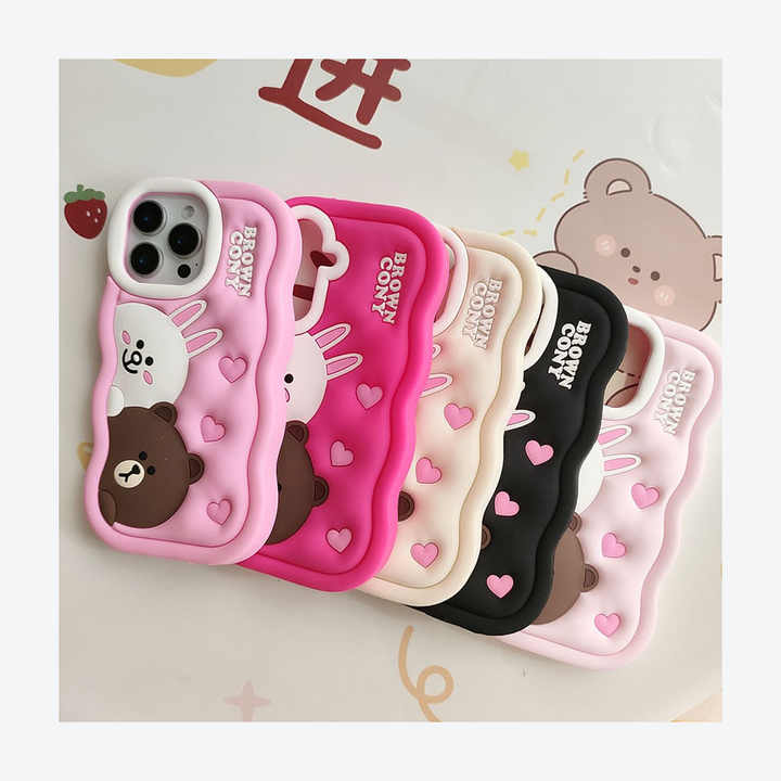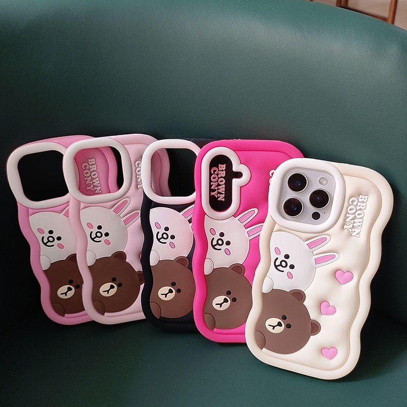 เคสโทรศัพท์ซิลิโคนลายการ์ตูนสำหรับ iPhone 15PLUS 16Pro MAX น่ารักกันน้ำขอบหยักสุดหรูสีน้ำตาล