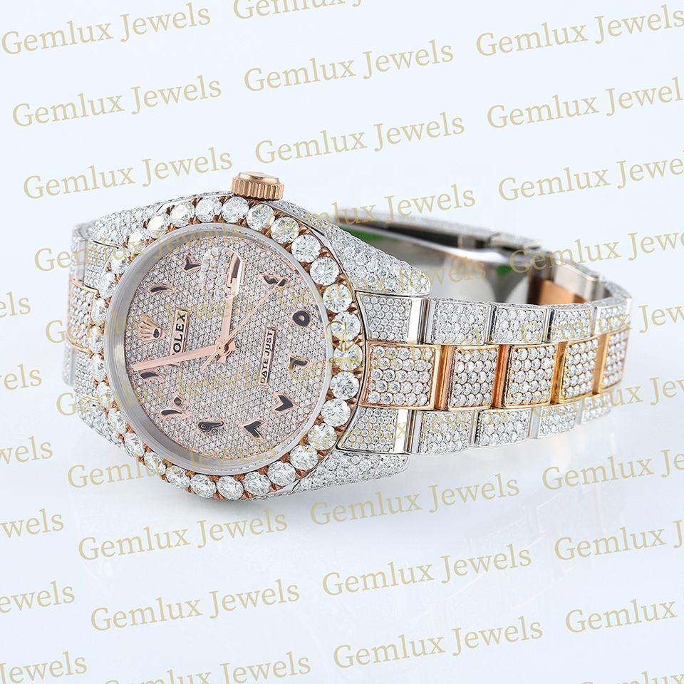 นาฬิกาฮิปฮอปสำหรับผู้ชายเครื่องทดสอบเพชรผ่านทางการอาหรับนาฬิกาฮิปฮอปประดับเพชรสองโทนสีอัตโนมัติสำหรับผู้ชาย