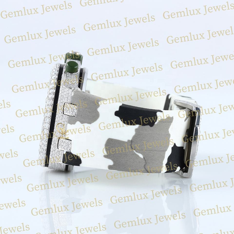 นาฬิกาสายรัดยางสำหรับผู้ชายตัวทดสอบเพชรผ่านเพชรแบบหรูหรา