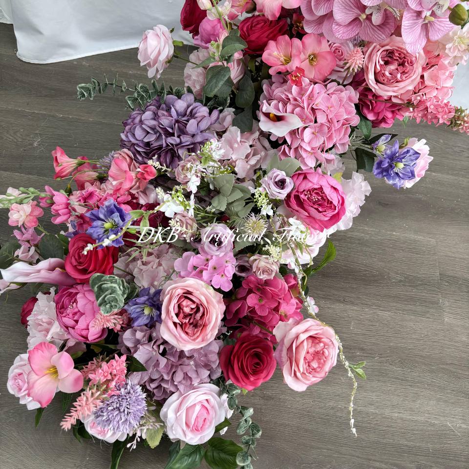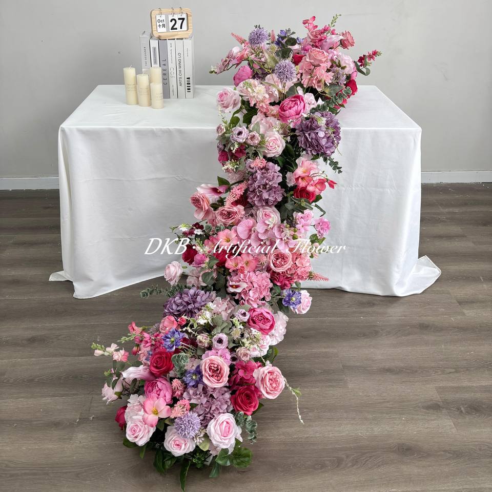นักวิ่งประดับดอกไม้ขนาดใหญ่ประดับกลางแต่งงานสุดหรูนักวิ่งดอกไม้ดีไซน์ใหม่สำหรับตกแต่งโต๊ะงานแต่งงาน