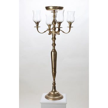 เชิงเทียนโลหะสีทองสำหรับตกแต่งงานแต่งงานสุดหรูเชิงเทียน4แท่งพร้อมถ้วยดอกไม้ทำด้วยมือวางบนโต๊ะวางกลางโต๊ะ
