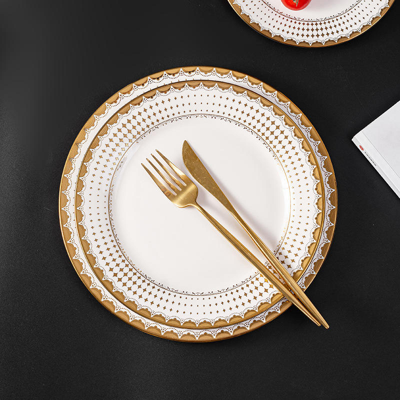 ชื่อผลิตภัณฑ์:จานอาหารค่ำขอบทอง
