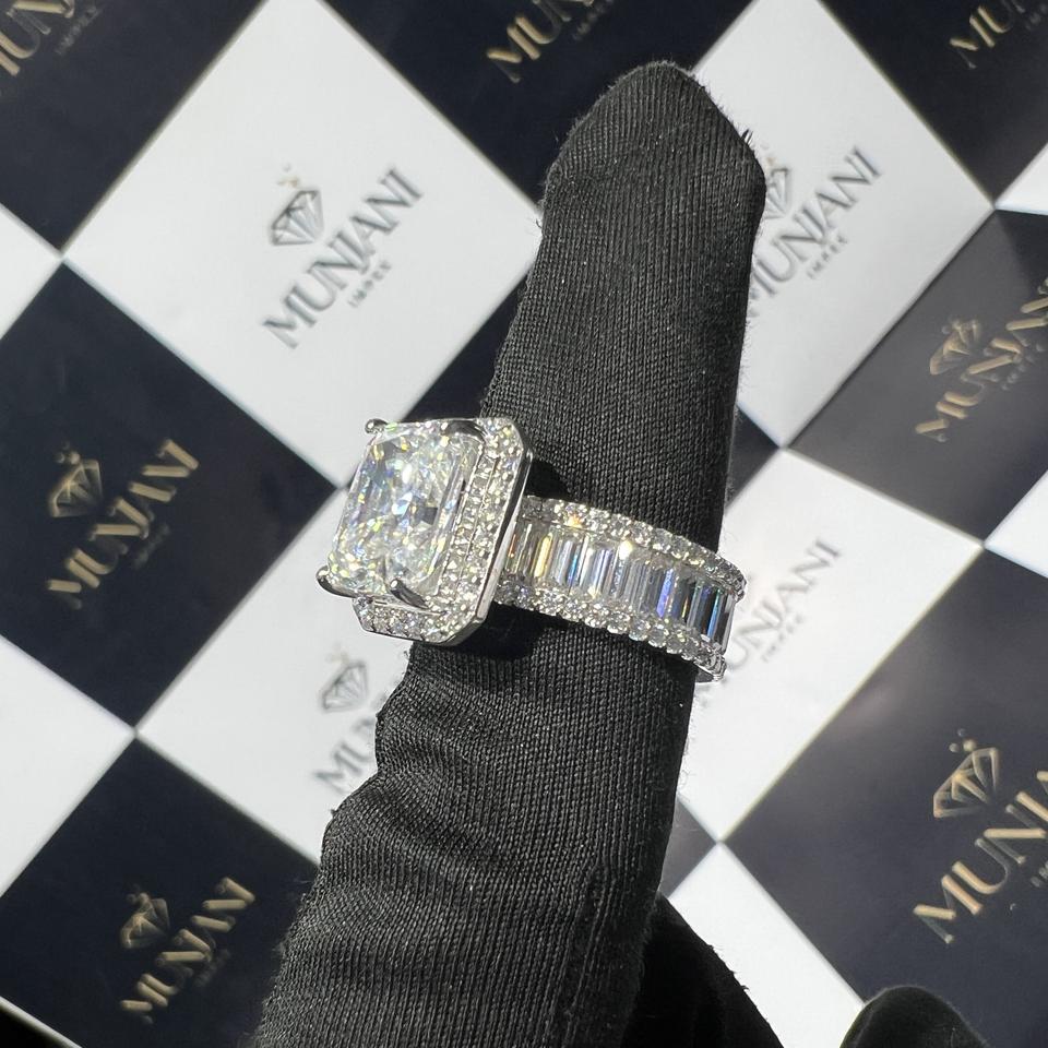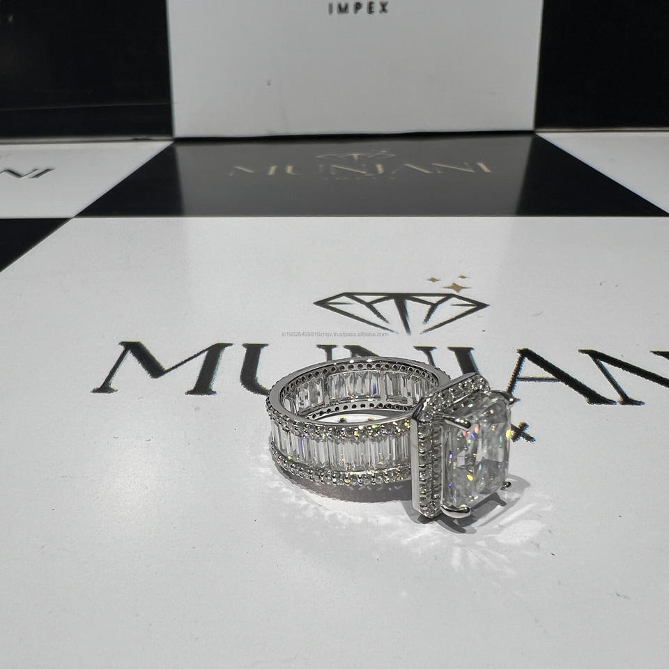 แหวนหมั้นแต่งงานสุดหรู สำหรับทั้งชายและหญิง ทองคำขาว 14k เพชรทรงบาแกตต์ เพชรเลี้ยงในห้องปฏิบัติการ รับรองโดย IGI เครื่องประดับชั้นดี