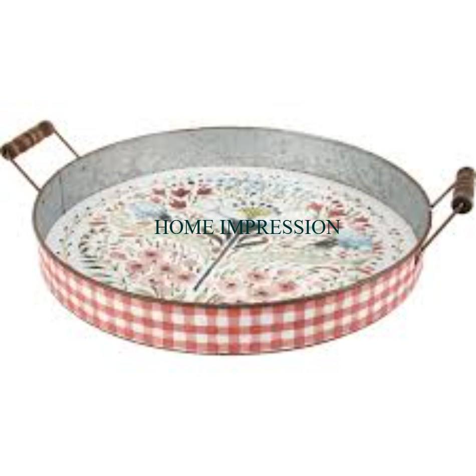 Luxury Wedding Serving Tray With Handcrafted Galvanized Metal Handle Food Safe Coating Custom Size Galvanized 3 Compartment
