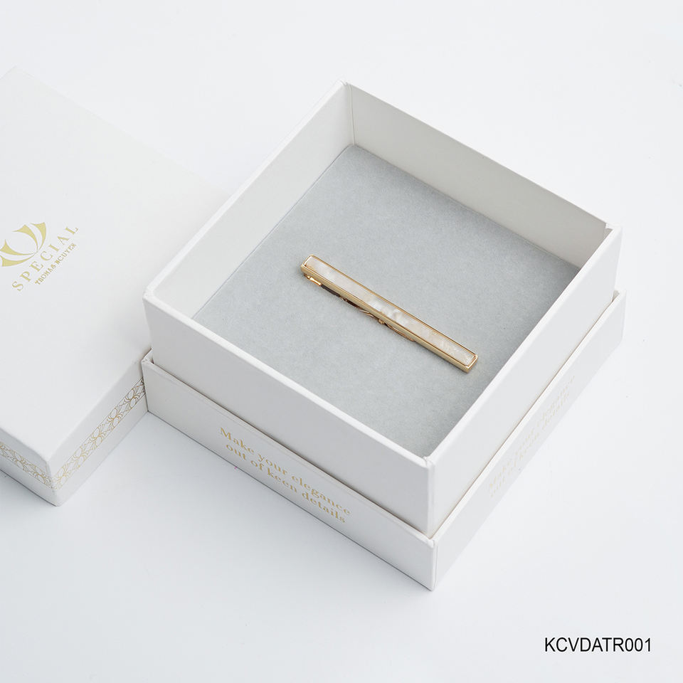 คลิปหนีบเนคไทเคลือบทอง 18K ประดับอาเกตสีขาวสุดหรูสำหรับผู้ชาย - อัญมณีเสริมฮวงจุ้ยสำหรับผู้ชาย | KCVDATR001 | คอลเลกชันตินวู